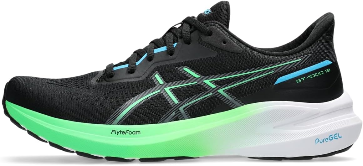 Designed with PureGEL technology and FLYTEFOAM cushioning in the midsole, the ASICS Men's GT-1000 13 helps create a lightweight feel with softer landings so you can experience more comfort in each step. The 3D GUIDANCE SYSTEM of these running shoes increases stability for a more balanced stride. Offering added support and elevated cushioning, these sneakers come with an OrthoLite X-30 footbed that offers improved impact absorption and creates a softer feeling at the footstrike for added comfort. The polyester and synthetic mesh upper with synthetic overlays and polyester and synthetic mesh lining keep your feet cool and comfortable. Experience superior comfort and performance wearing these cushioned shoes. Lace-up closure. Round toe silhouette. Rubber outsole.