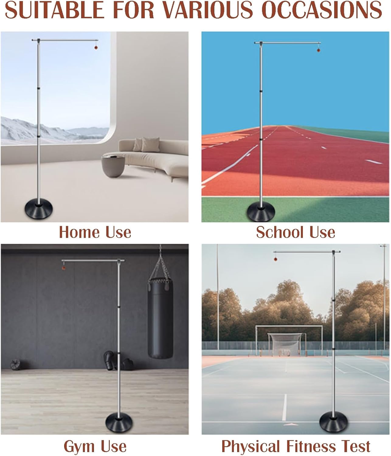 The Vertical Jump Tester is highly accurate and reliable performance. Its main purpose is to measure an athlete's vertical jump and is an indispensable tool for coaches and trainers. The device is distinguished by its user-friendly design, which ensures easy installation and operation.It has proved indispensable in various fields by identifying weaknesses and measuring improvements over timeFeaturesThe tester can be reset quickly and easilySuitable for athletes to train vertical jumpEnsure athletes are in top condition when competingSpecificationProduct Name: Vertical Jump Trainer/Vertical Jump Training Equipment Tool/Volleyball Training Vertical Jump Measuring DeviceSize: 130-235cm/130-330cm(4.3-7.7ft/4.3-10.8ft)Color: SilverMade of: Thickened steelFeatures: adjustable lengthRecommended use: sports and fitnessApplicable people: Children teenagers adultsPackage List:1 X Vertical Jump TesterNotice1. Due to different manual measurement methods the error is 1-2 cm2. We try our best to make the pictures as close to reality as possible but light contrast and color display may cause color differences